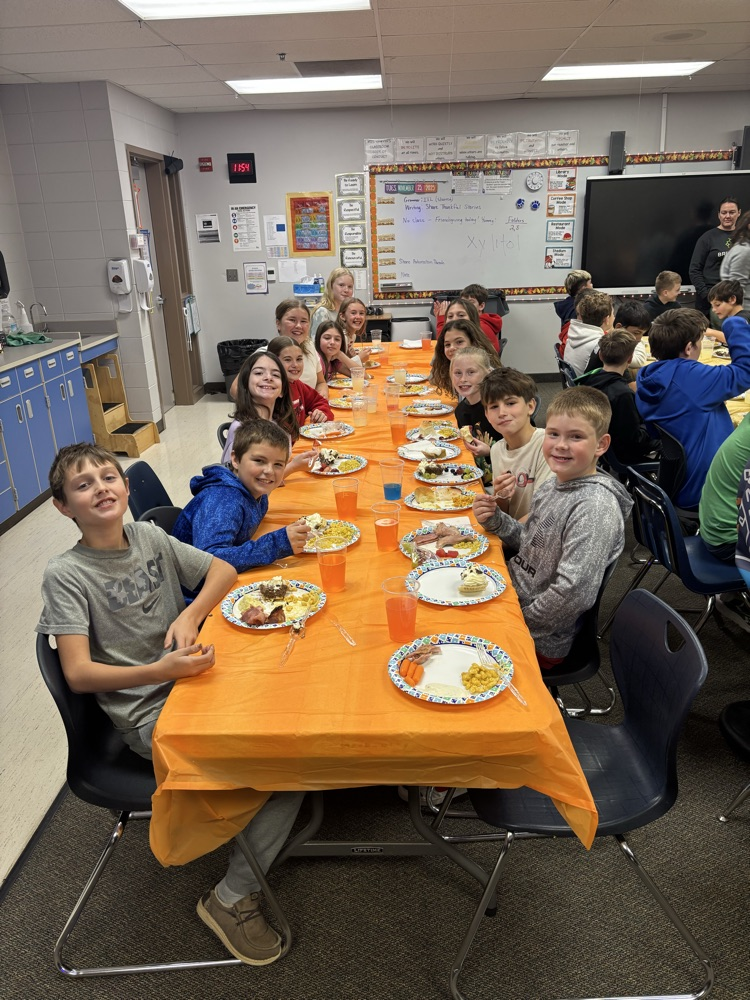 The fifth graders have been learning about the first Thanksgiving in Social Studies for the past well two weeks, and then were able to enjoy a Friendsgiving meal on Tuesday before releasing for Thanksgiving break. Thanks to all the parents who supported with donated food and supplies. The food was yummy!